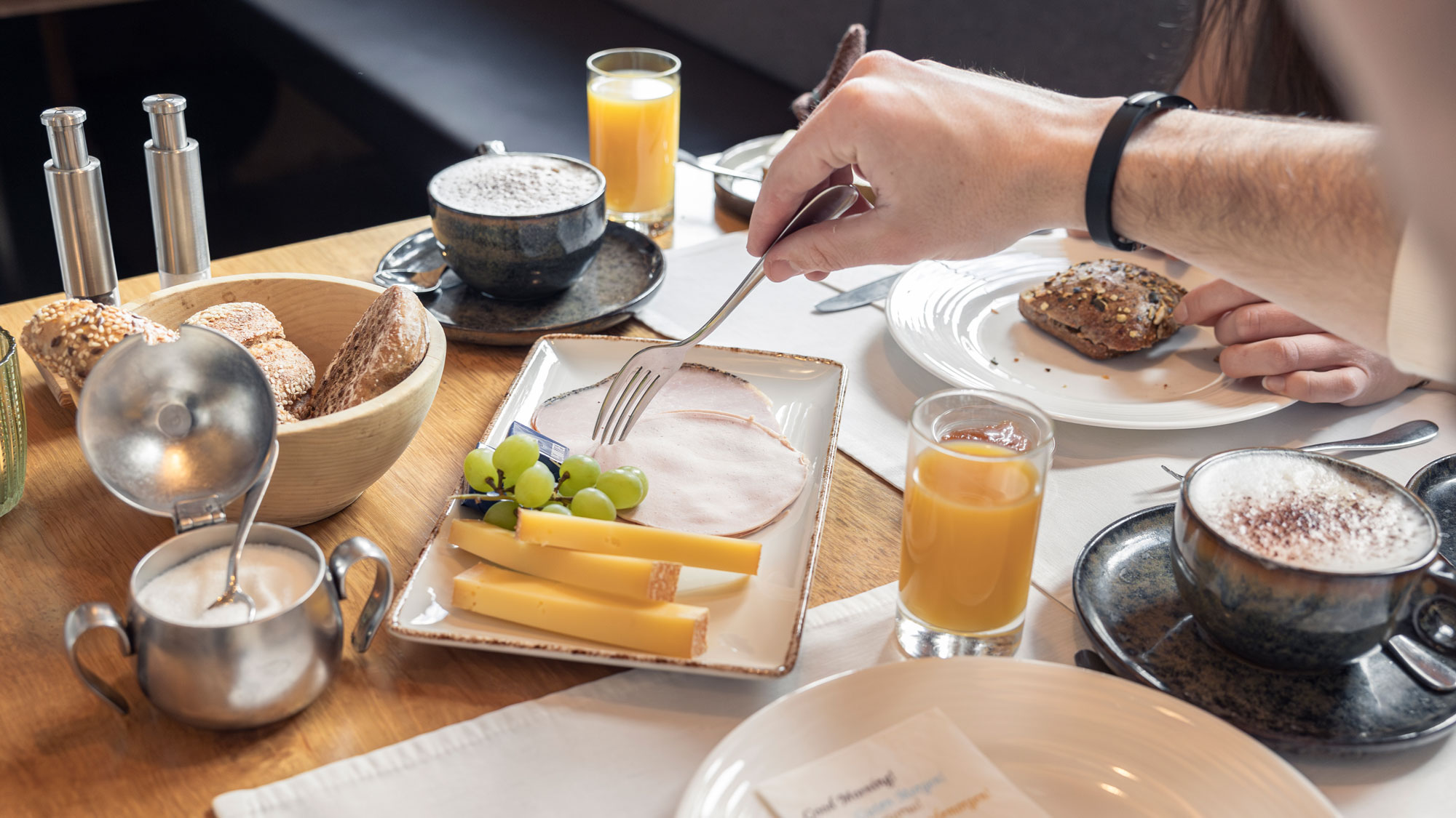 Start your day with us in the cozy “Kaminstube” fireplace dining room. The pleasant breakfast room with adjoining lounge in modern Tyrolean style welcomes you every morning with a variety of treats so that you can start your next vacation adventure well nourished. The breakfast buffet is open daily from 7:30 AM to 10:30 AM.