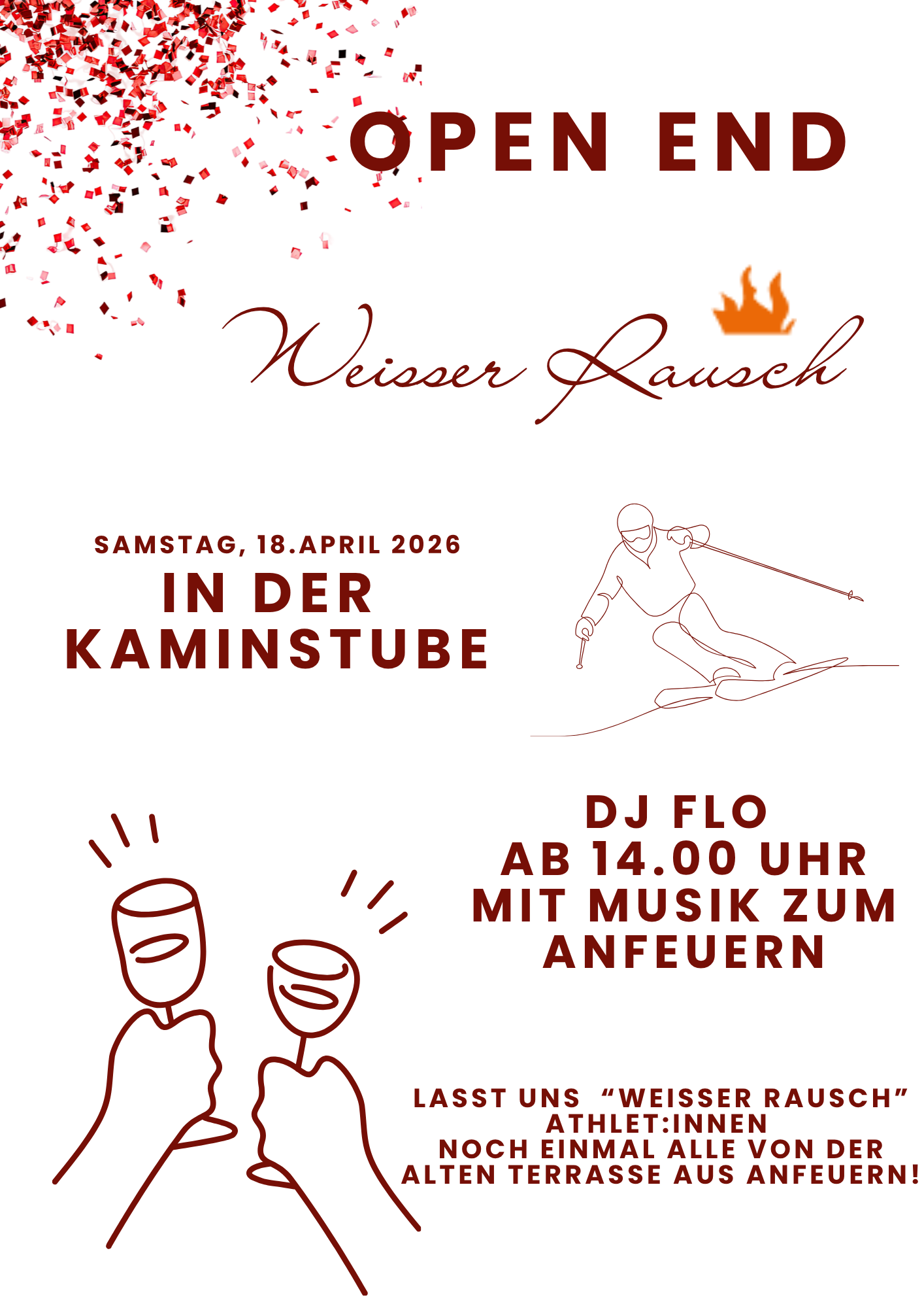 - Samstag: Legendäre weisser Rausch Party mit DJ Florian